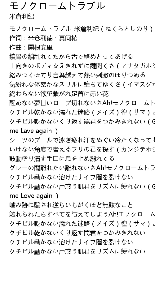 | [00:00.00] | モノクロームトラブル-米倉利紀(ねくらとしのり) |