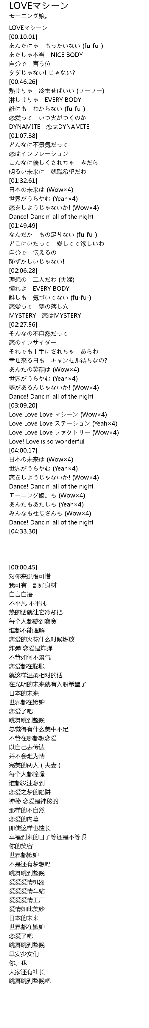 | [03:44.70] | Love Love Love マシーン (Wow×4) |
