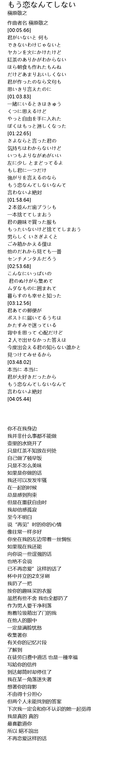 | [03:58.26] | もう恋なんてしないなんて |