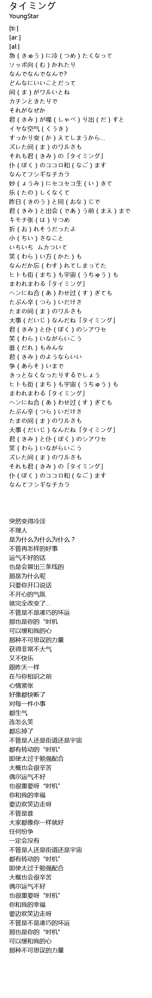 | [00:49.89] | それも君(きみ)の「タイミング」 |