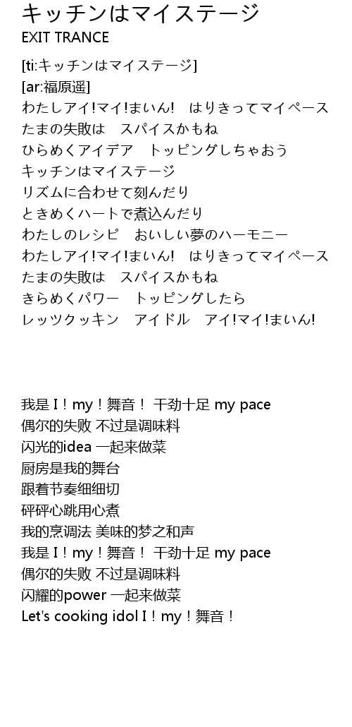 | [00:41.21] | Let's cooking idol I!my!舞音! |