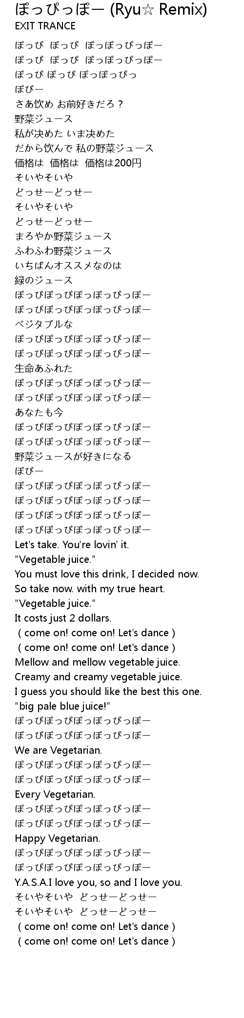 | [02:54.92] | ぽっぴぽっぴぽっぽっぴっぽー |