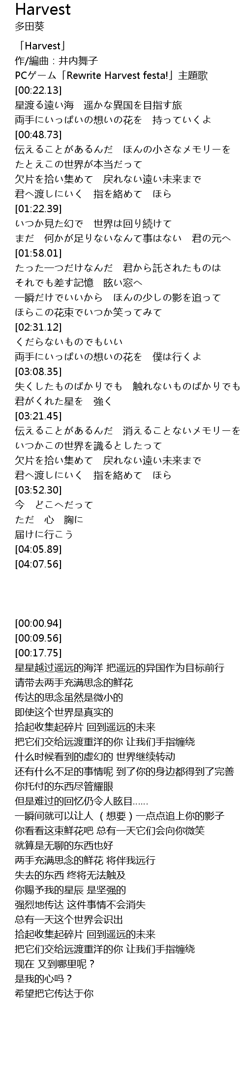 | [00:17.75] | PCゲーム「Rewrite Harvest festa!」主題歌 |