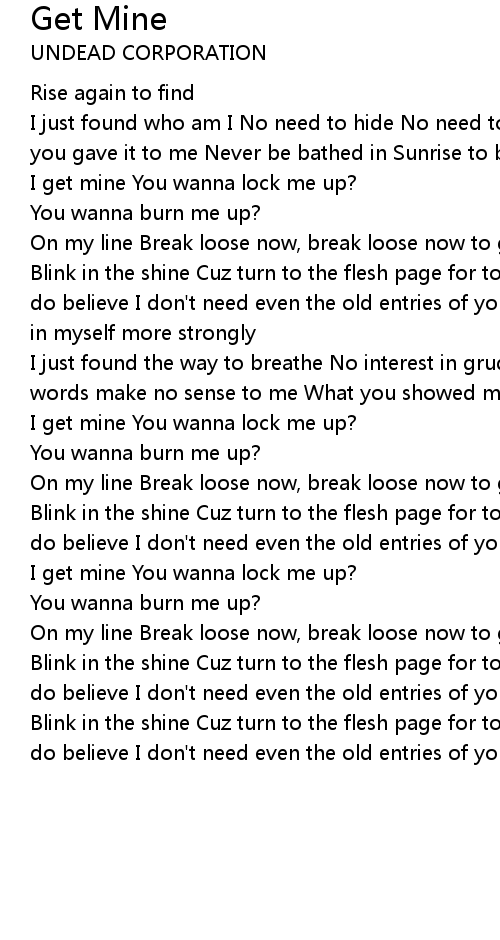 Blink in the shine Cuz turn to the flesh page for today To be, gotta be free I do believe I don't need even the old entries of you I just want to be