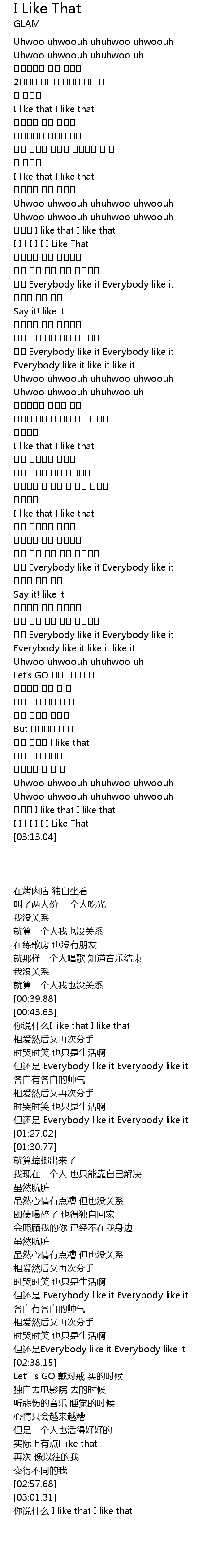 | [03:04.80] | 뭐라고 I like that I like that |