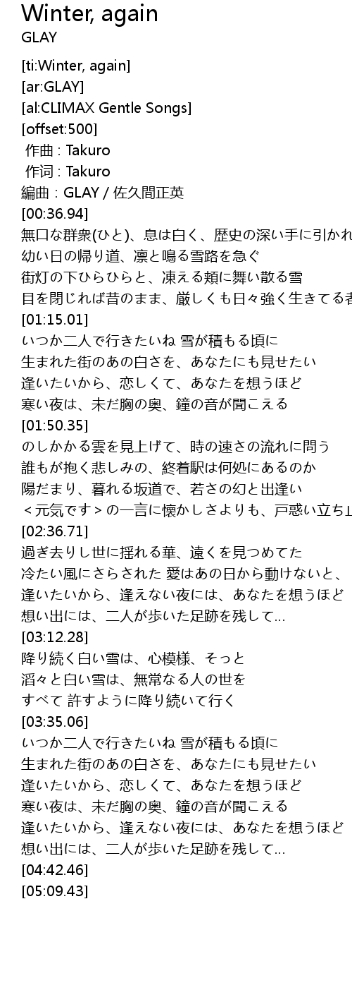 | [00:34.94] | 編曲:GLAY/佐久間正英 |