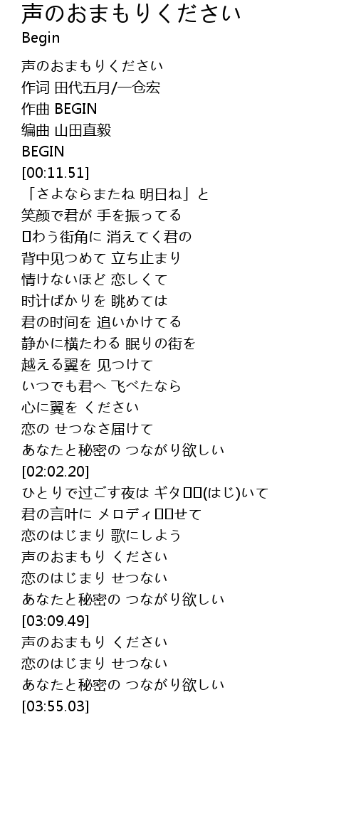 | [03:27.00] | 声のおまもり ください |