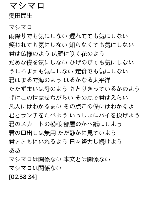 | [02:28.74] | マシマロは関係ない 本文とは関係ない |