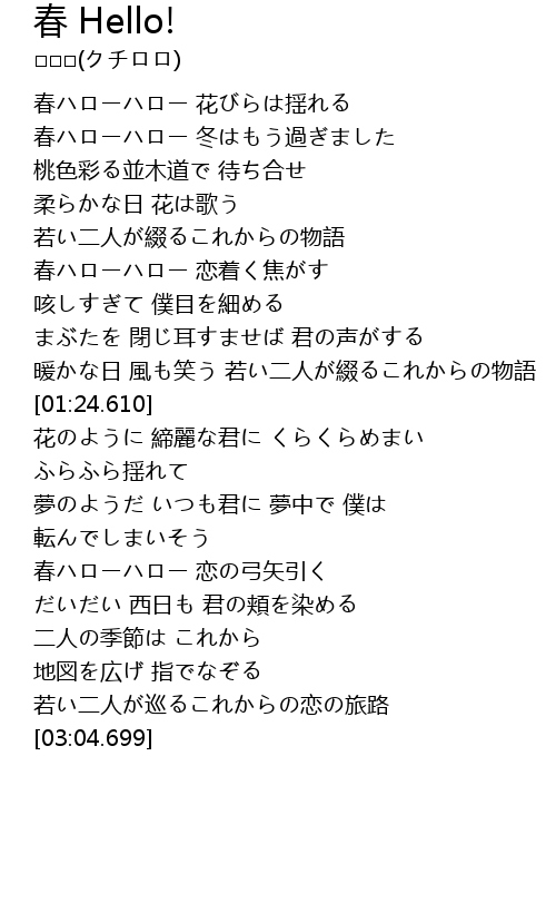 | [00:00.03] | 春ハローハロー 花びらは揺れる |