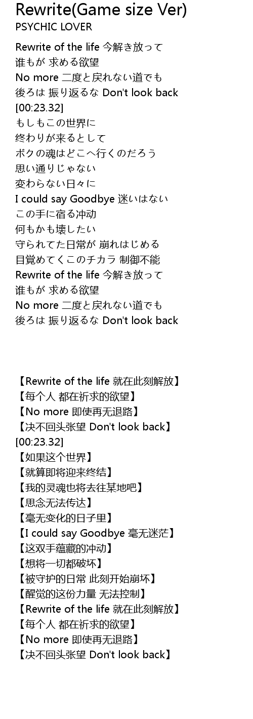 | [00:17.32] | 後ろは 振り返るな Don't look back |