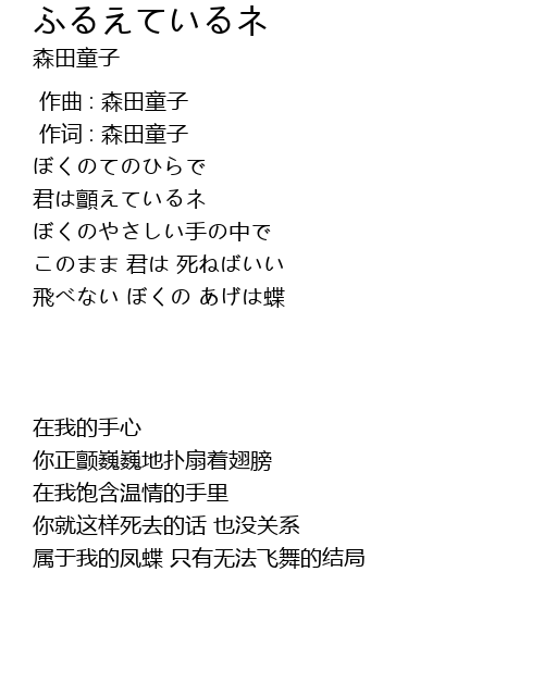 | [01:28.94] | 飛べない ぼくの あげは蝶 |