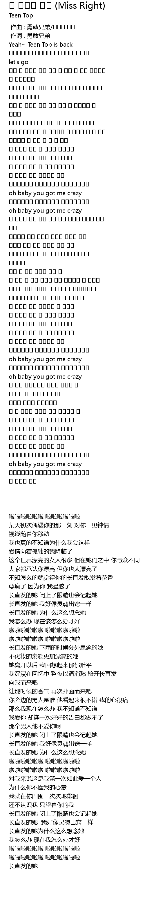 | [01:35.740] | 你旁边的男人是谁 他看起来很不错 我的心很痛 |