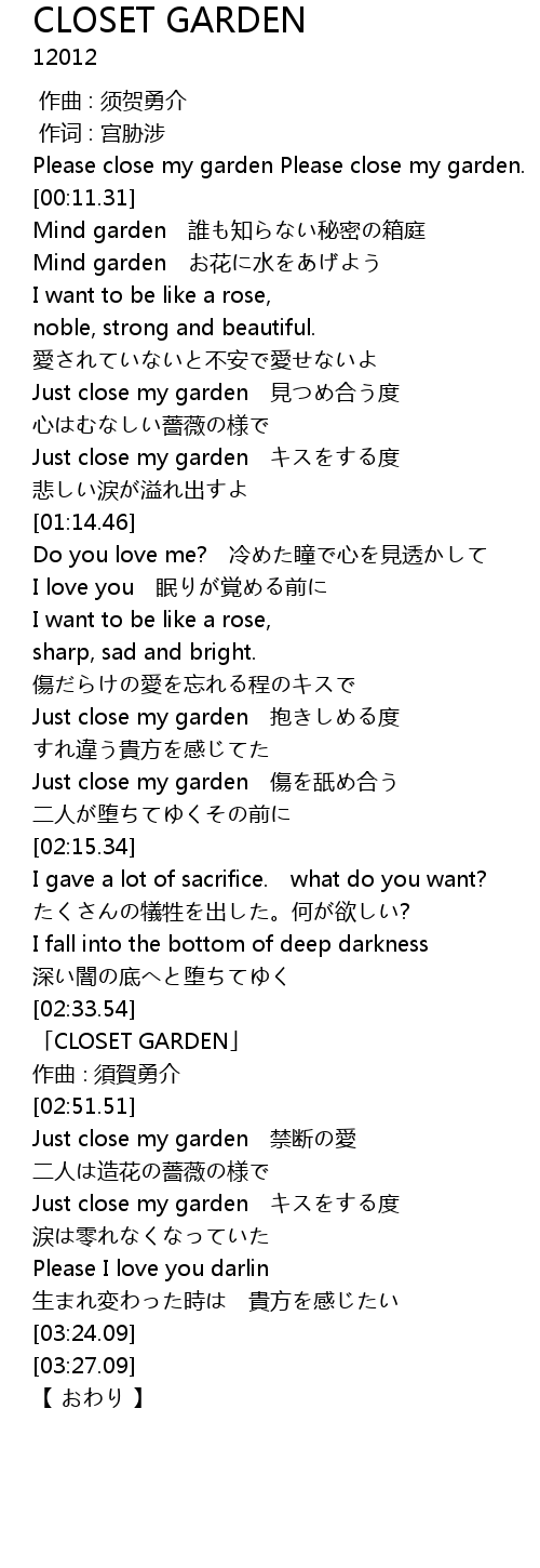 | [02:53.51] | Just close my garden 禁断の愛 |