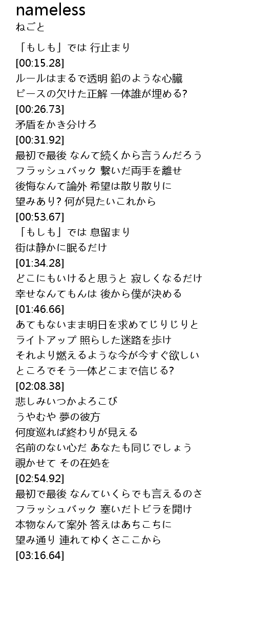 | [02:44.27] | 名前のない心だ あなたも同じでしょう |