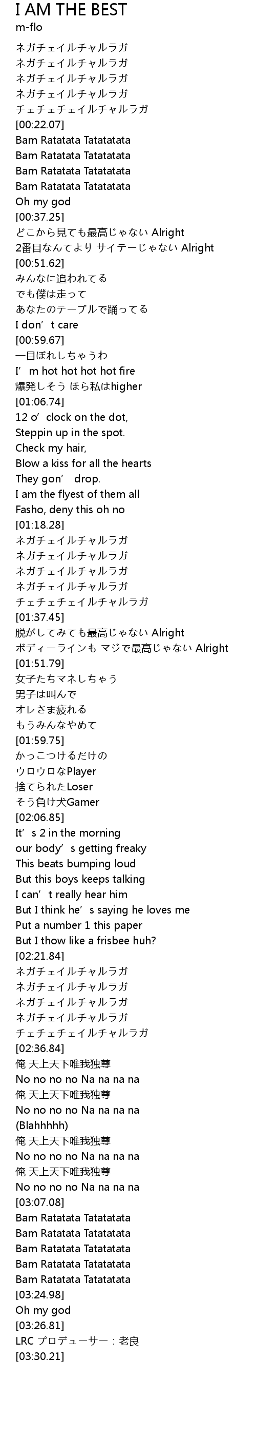 | [03:18.95] | Bam Ratatata Tatatatata |
