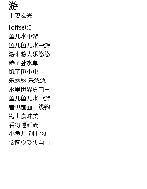 | [00:02.12] | 鱼儿水中游 |