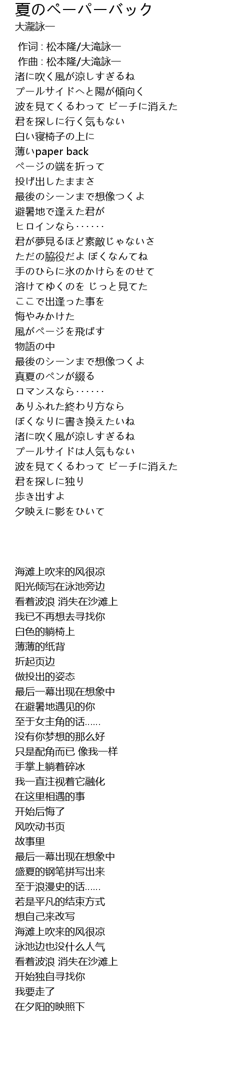 | [00:00.000] | 作词 : 松本隆/大滝詠一 |