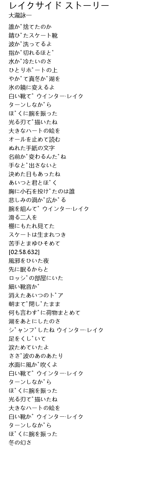 | [00:44.626] | やがて真冬が湖を |