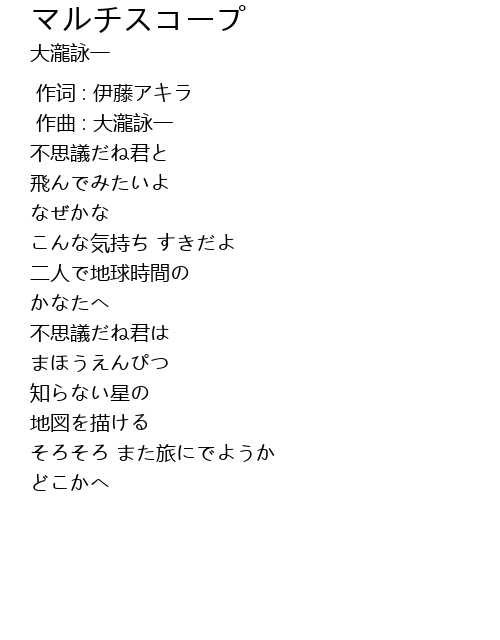 | [00:01.000] | 作曲 : 大瀧詠一 |