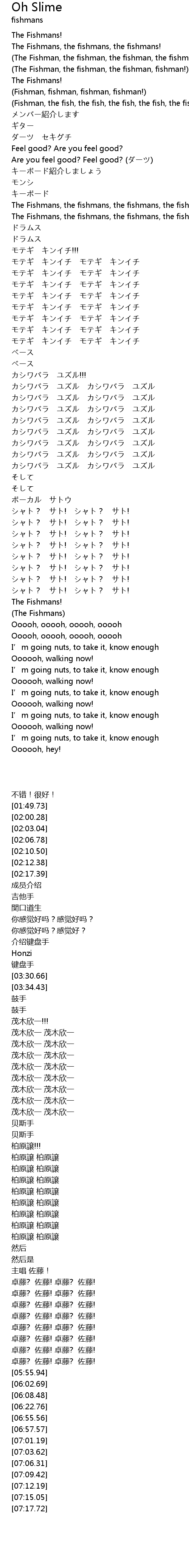 | [02:00.28] | The Fishmans, the fishmans, the fishmans! |