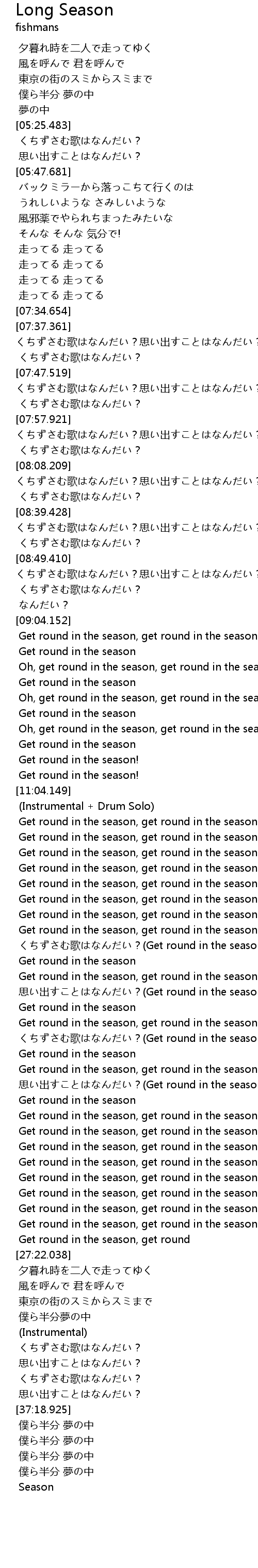 | [25:58.692] | くちずさむ歌はなんだい?(Get round in the season) |