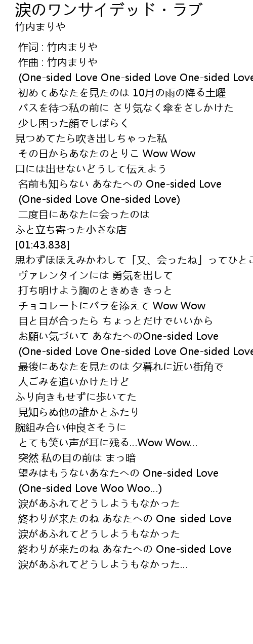 | [02:34.009] | (One-sided Love One-sided Love One-sided Love Woo Woo…) |