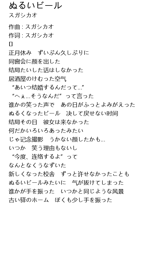 | 歌曲 | ぬるいビール |