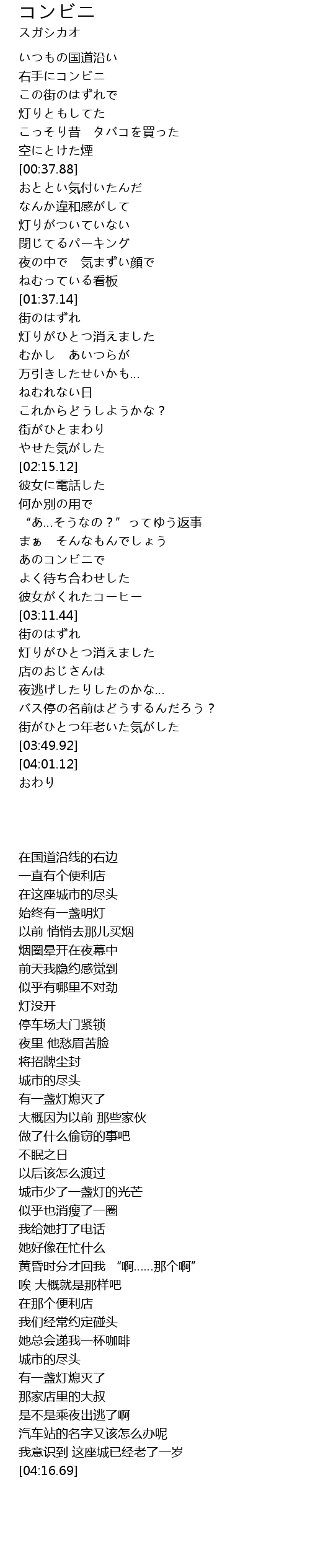 | [03:39.61] | 街がひとつ年老いた気がした |