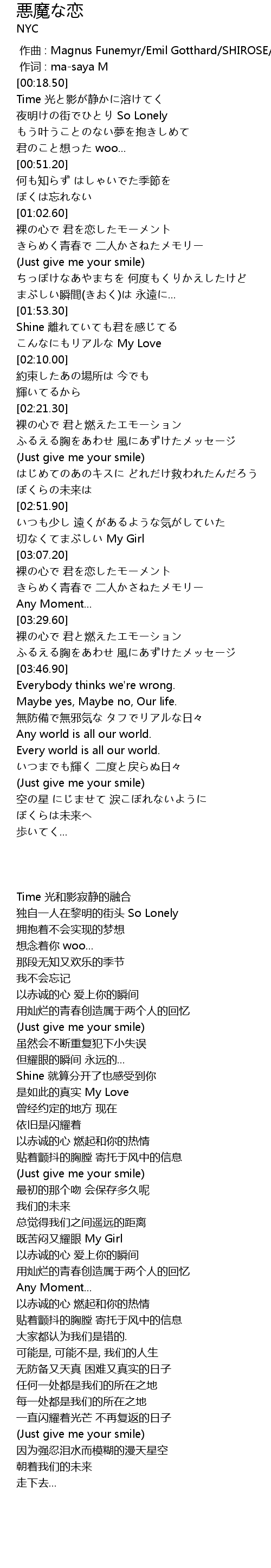 | [03:00.34] | 切なくてまぶしい My Girl |