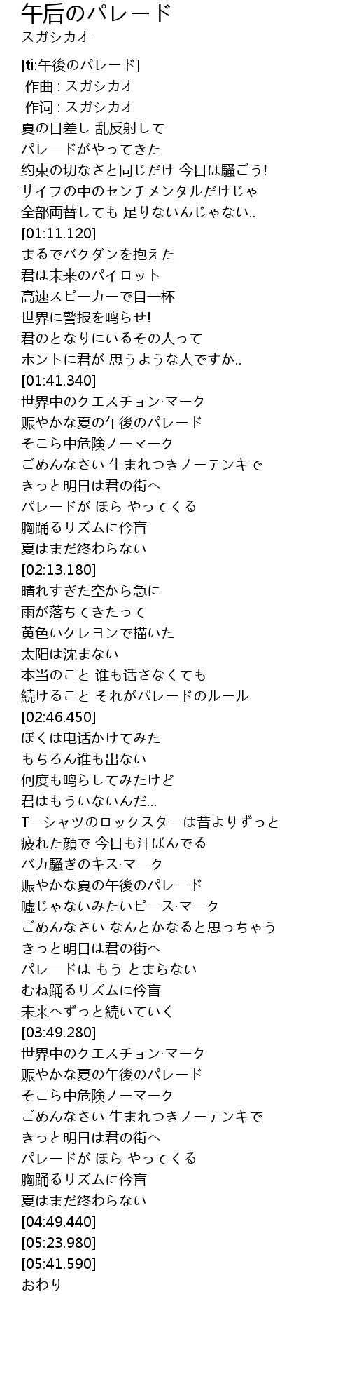 | [01:45.270] | 赈やかな夏の午後のパレード |