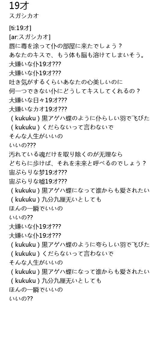 | [02:03.245] | 宙ぶらりな嘘19才??? |
