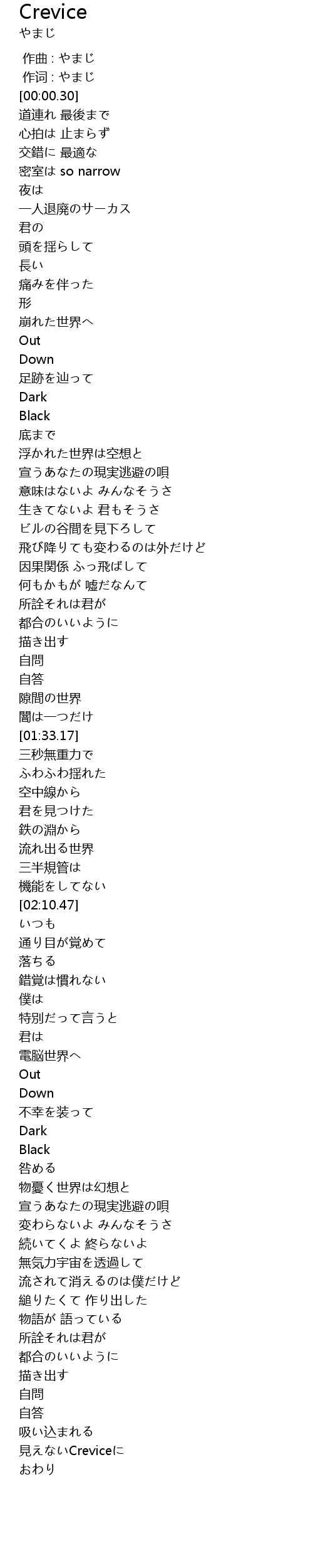 | [01:01.18] | 宣うあなたの現実逃避の唄 |
