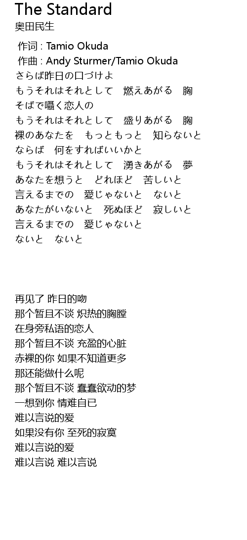 | [00:01.000] | 作曲 : Andy Sturmer/Tamio Okuda |