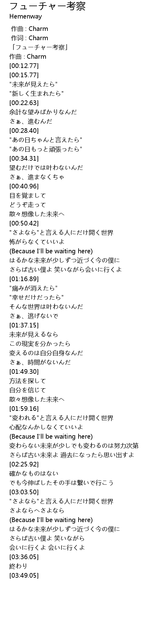 | [02:16.98] | さらば古い未来よ 過去になったら思い出すよ |