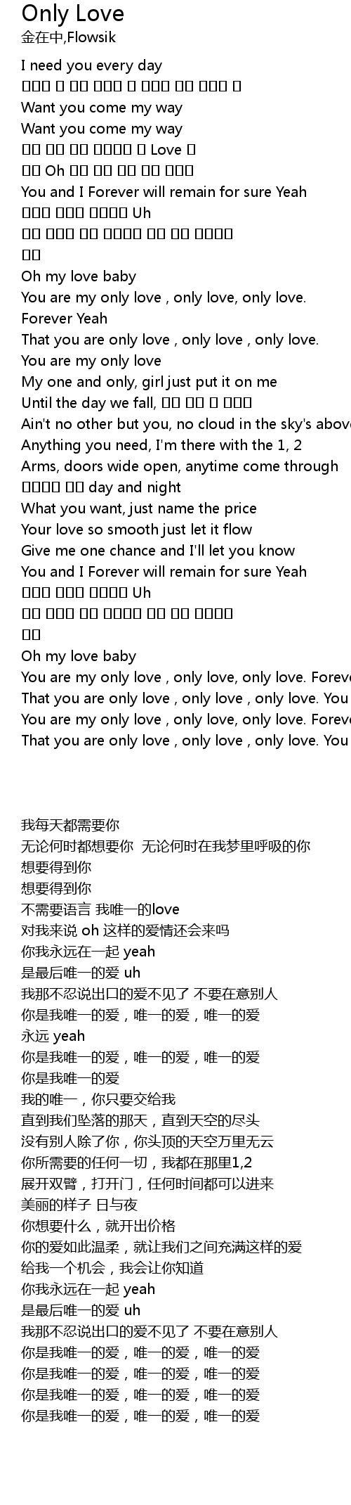 | [02:39.740] | You are my only love , only love, only love. Forever Yeah |