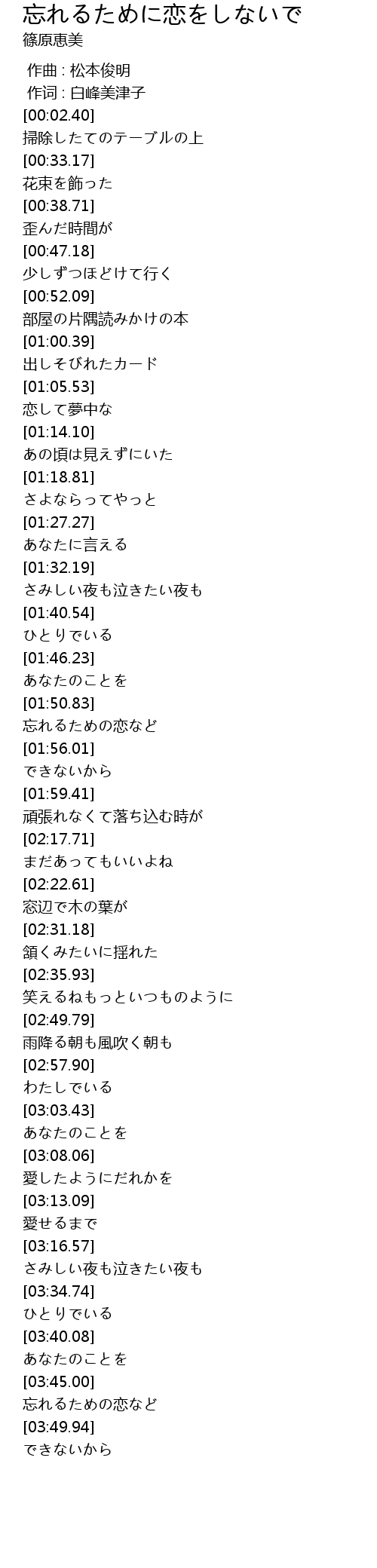 | [03:45.78] | 忘れるための恋など |