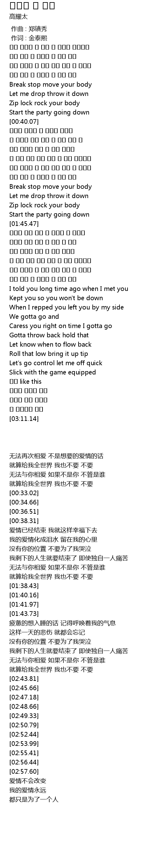 | [01:23.33] | 너를 사랑할 수 없어 니가 아닌 그 누구도 |