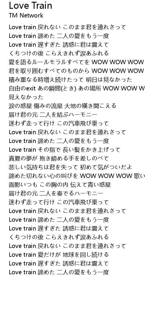 | [04:27.96] | Love train 戻れない このまま君を連れさって |