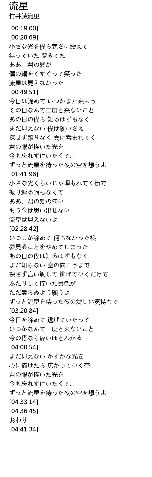 | [00:41.65] | 流星は見えなかった |
