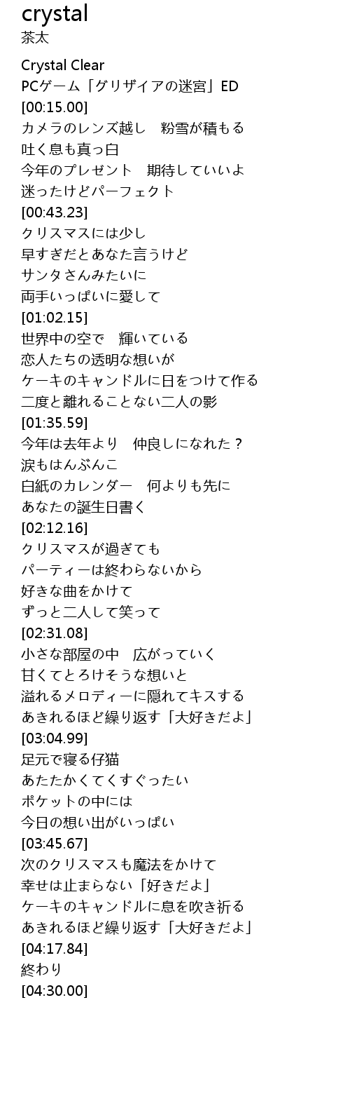 | [00:00.00] | Crystal Clear |