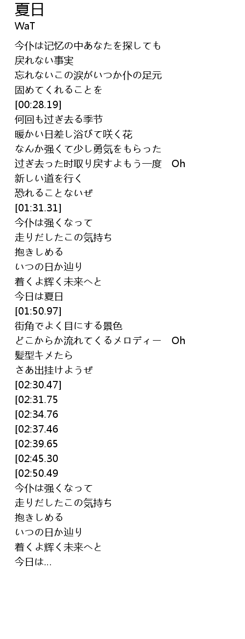 | [03:32.57][02:45.30] | 今日は夏日 |