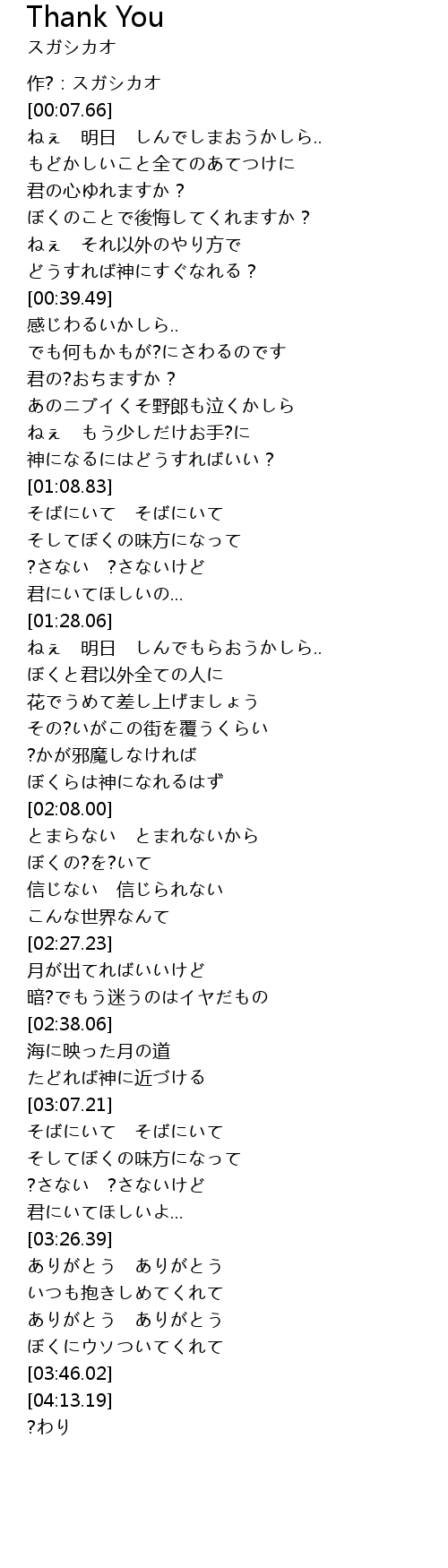 | [00:09.66] | ねぇ 明日 しんでしまおうかしら.. |
