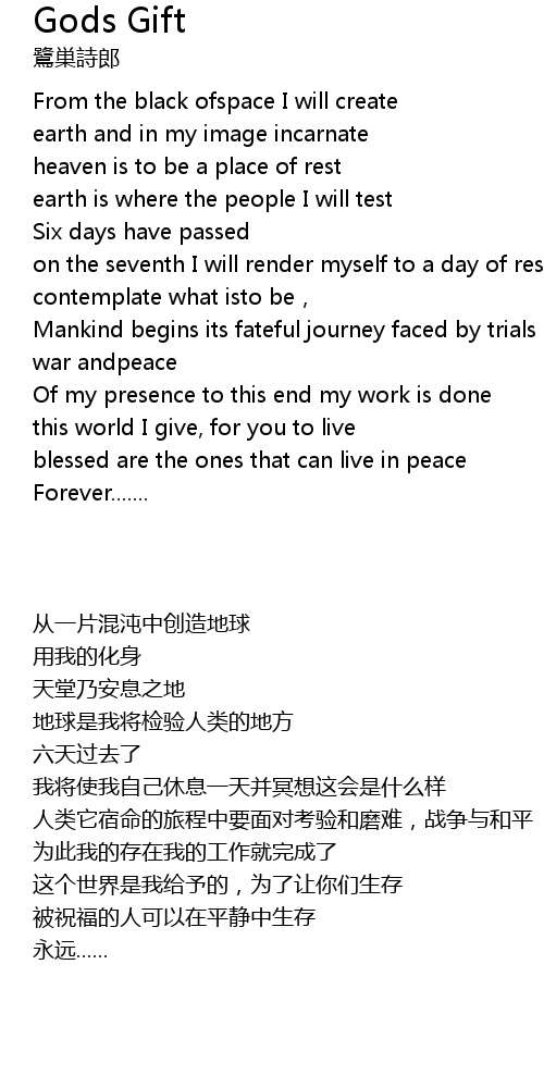 | [03:06.33] | 这个世界是我给予的,为了让你们生存 |