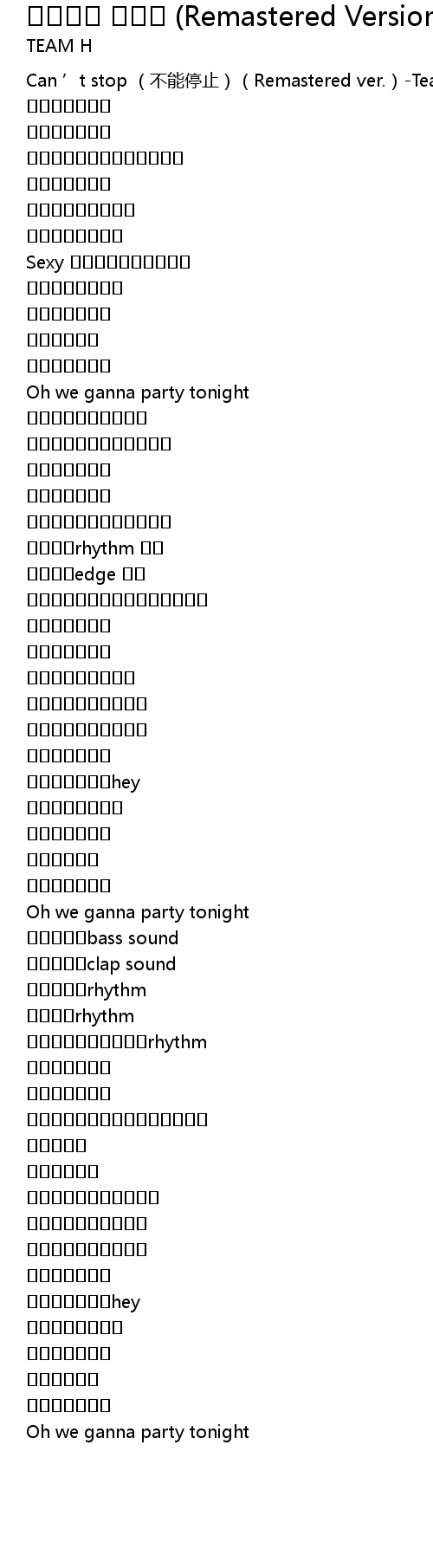 | [00:00.00] | Can ' t stop bù néng tíng zhǐ Remastered ver. Team H |