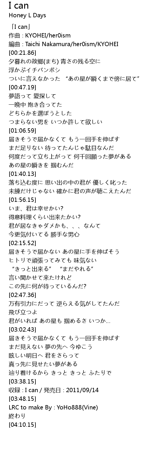 | [00:01.86] | 「I can」 |