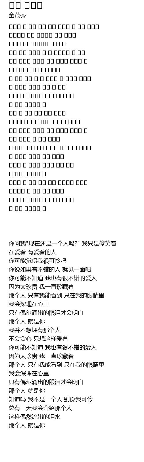 | [02:43.42] | 그 사람 나만 볼 수 있어요 내 눈에만 보여요 |