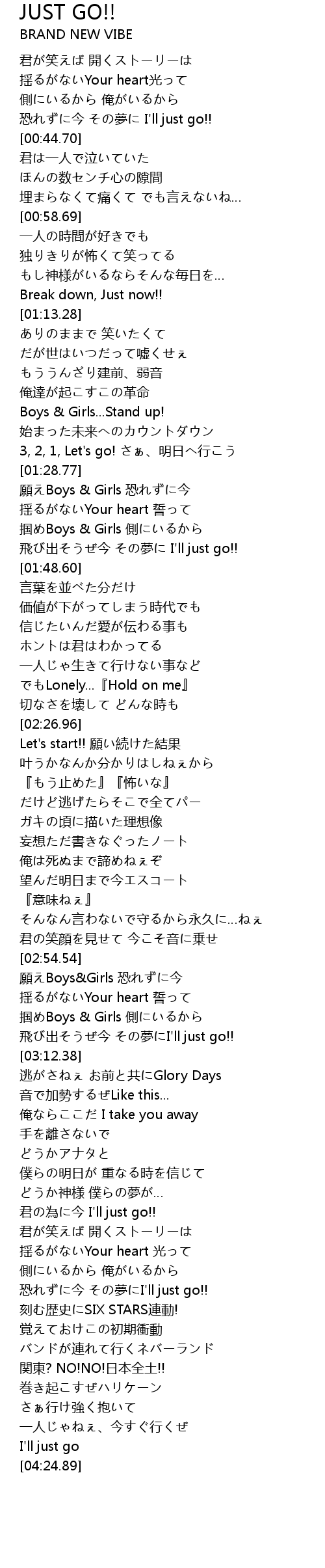 | [03:53.41] | 君の為に今 I'll just go!! |
