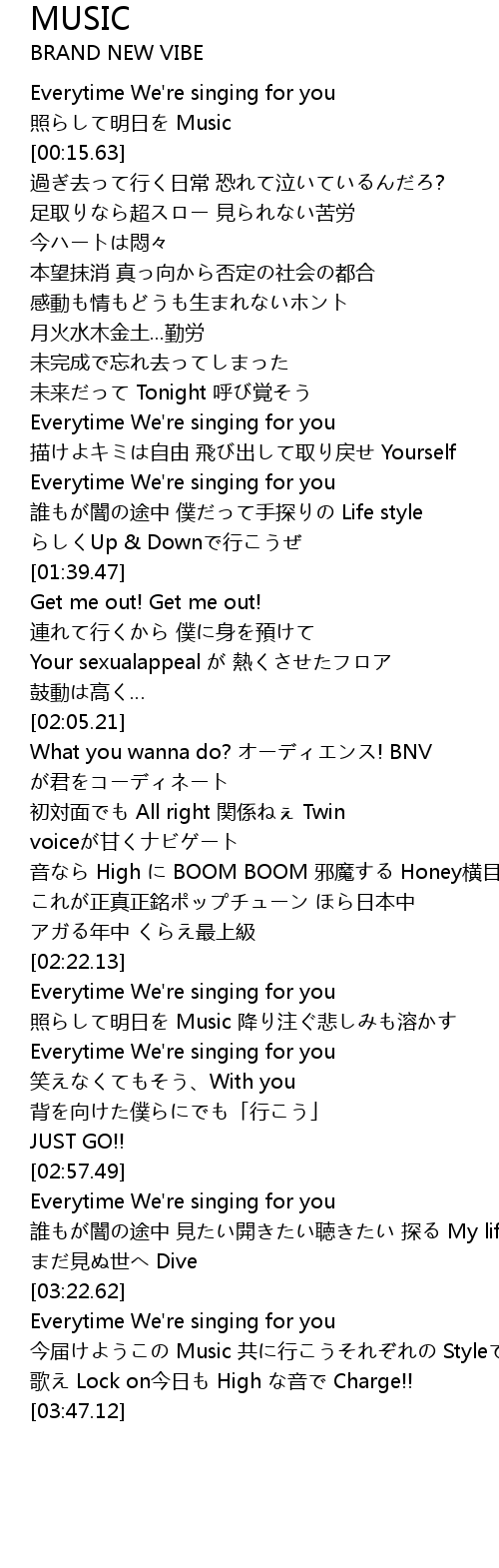 | [02:06.20] | What you wanna do? オーディエンス! BNV が君をコーディネート |