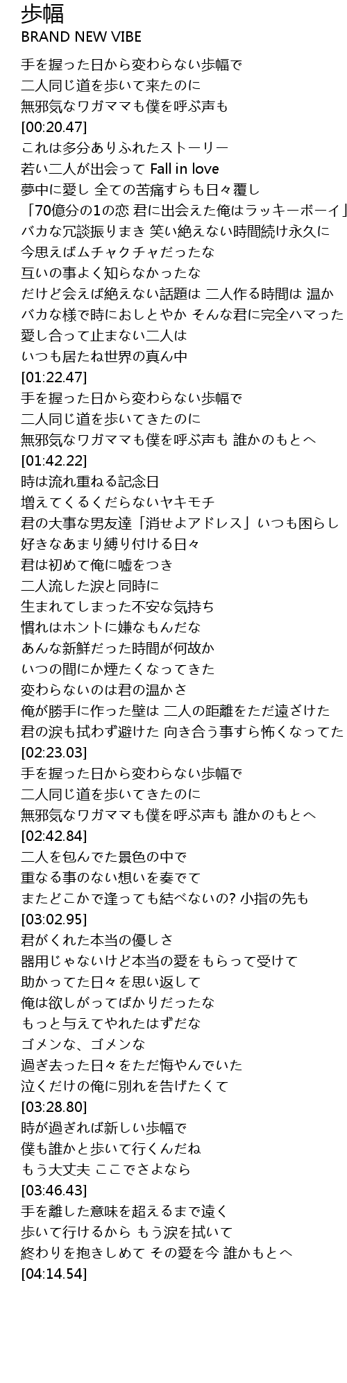 | [00:01.67] | 手を握った日から変わらない歩幅で |