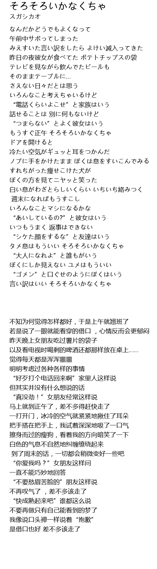 | [00:19.380] | みえすいた言い訳をしたら よけい滅入ってきた |